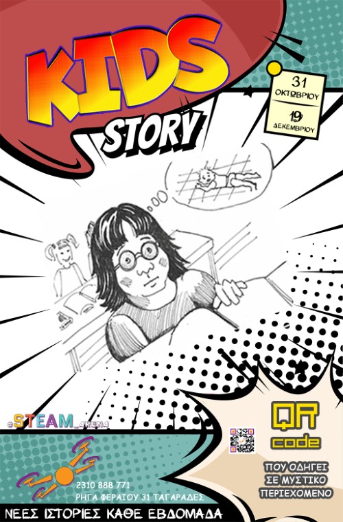 Το KIDS STORY ενσωματώνει τις τεχνικές της δραματουργίας και της ζωγραφικής για να ωθήσει τα παιδιά να δημιουργήσουν ένα καινούργιο δικό τους comic